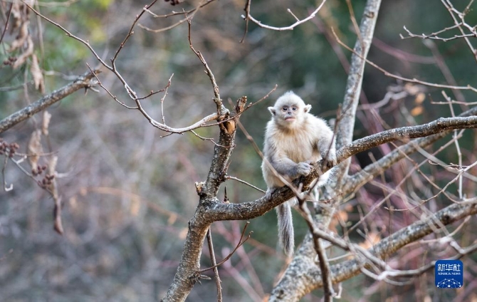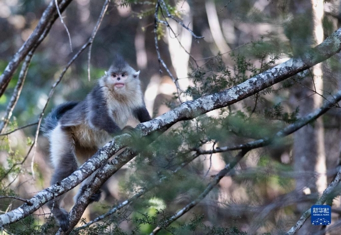 图为3月13日在云南白马雪山国家级自然保护区内拍摄的滇金丝猴。 新华社记者王冠森 摄