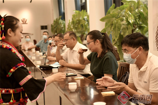 此次活动不仅开展了深入的茶产业发展交流会,还邀请嘉宾现场参观了德昂酸茶体验馆、观看了茶艺表演、了解了国家级非物质文化遗产德昂族酸茶的制作工艺。德宏州史志办董晓梅分享了德昂酸茶的发展历程,“德昂人村村种茶、家家植茶、人人喝茶、迎客敬茶,茶叶成为德昂族在日常社会生活、社交礼仪、创收致富等方面离不开的事物。为了守护和发展好这份世代相传的产业,我们希望更多人认识、了解和品饮德宏茶。”