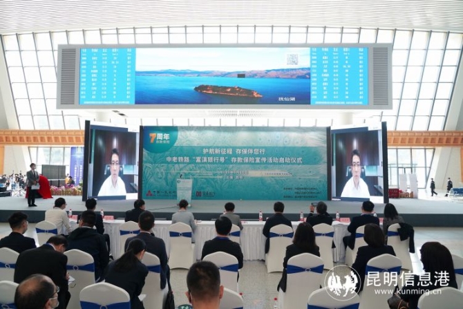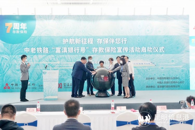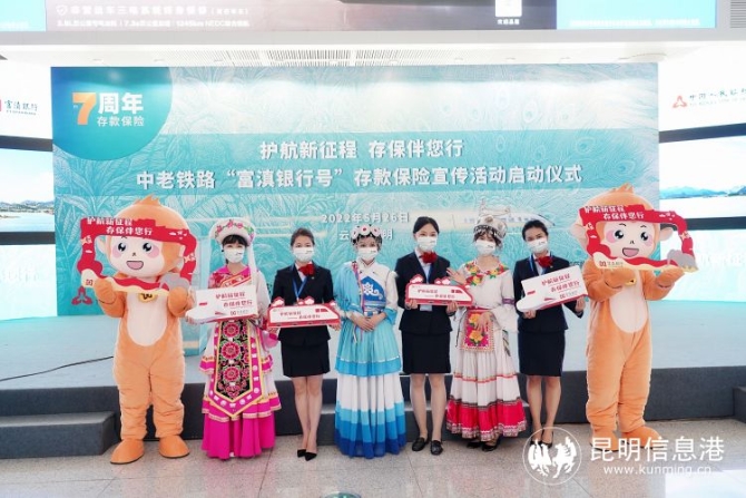 昆明信息港讯 记者杨雁 5月26日上午,“护航新征程存保伴您行”中老铁路“富滇银行号”存款保险宣传活动在昆明南火车站举行。活动以“现场活动+视频直播”的形式进行,位于北京的中国存款保险业务中心和云南省各银行业金融机构及社会群众通过视频形式参与活动。
