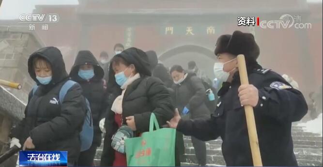 山东省泰安市公安局泰山景区分局岱顶派出所 所长 张连波:山岳景区都是台阶和山间树林,根本无法使用交通工具。我们下去有近2900多个台阶,特别是冬天,经常下雪,台阶结冰湿滑,走一步,上下一个台阶都很艰难,一不小心就来个后仰。