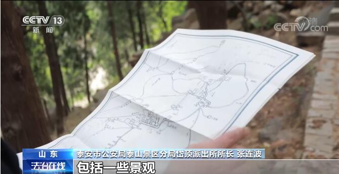 山东省泰安市公安局泰山景区分局岱顶派出所所长 张连波:我们辖区位于泰山主峰,有石碑石刻499处,有标识编号的数目1743课,包括一些特征鲜明的景观,还有单位商铺在这个救助图上都有编号和标注。只要游客能提供一点点线索,我们就能很快确定位置实施救助。