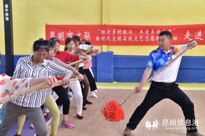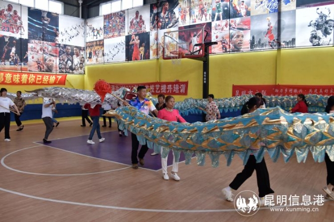昆明信息港讯 记者王奕然 李涛 为进一步做好志愿服务活动,以艺术的形式赋能乡村振兴,5月26日,“助力乡村振兴·共建美好家园”新时代文明实践文艺志愿服务活动在盘龙区滇源街道开展。此次活动邀请了包括云南省龙狮专业委员会、昆明龙狮运动协会会长毕付华、中国龙狮协会理事、省舞龙舞狮总教练、省首批龙狮非遗传承人陶志勇、国家二级编导、原昆明市花灯剧团导演王文、国家二级演员、原昆明市花灯剧团副团长顾培华等多位艺术家,为滇源街道70余名舞龙舞狮、花灯表演学员开展现场培训。