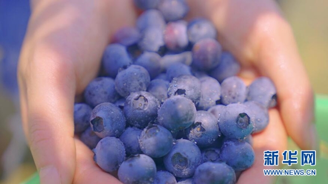 一颗颗蓝莓好似小巧圆润的蓝宝石。 新华网发