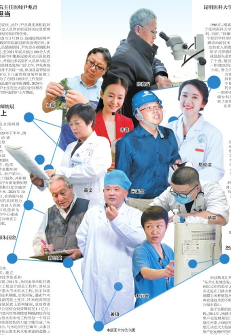 此次入选的10名“云岭最美科技人”中,有数十年专注茶树选育的农业科技人员,有年逾古稀仍奔波于野外开展化石标本采集的古生物学家,有扎根企业推进疫苗研发的技术领军人,有在新冠肺炎疫情下不惧艰苦奋战在一线的医护人员,有投身大江大河之畔从事水电开发的工程技术人员……他们在自己的岗位上默默奉献,在科技创新、科技推广、医疗卫生、成果转化等领域取得累累硕果,把论文写在了云岭大地上。