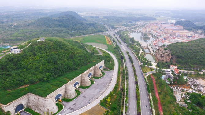 图为5月24日拍摄的贵安新区华为云数据中心(以道路为界右侧)和腾讯贵安七星数据中心(左侧,无人机照片)。