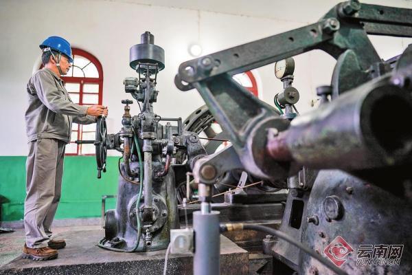 走进石龙坝水电站,厂房内,1912年投产的第一台发电机组“嗡嗡”的轰鸣声仍然铿锵有力。