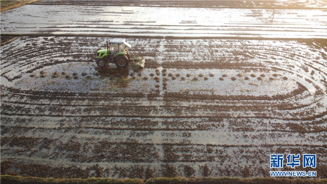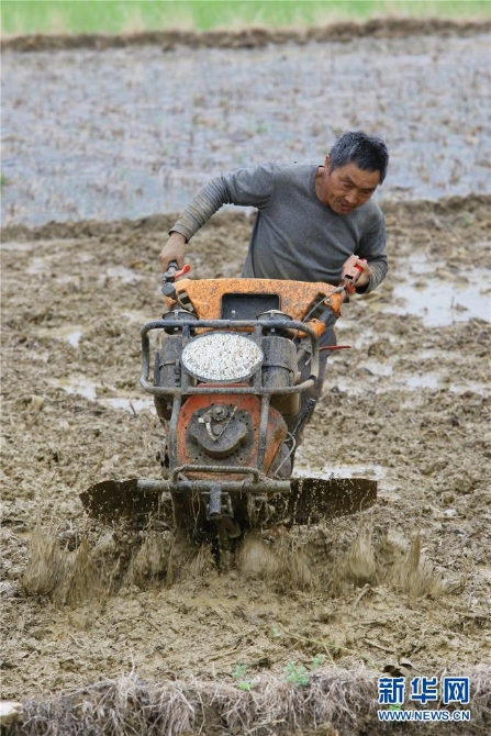 5月18日,云南省曲靖市麒麟区涌泉村的农田里,农机正在耕田。