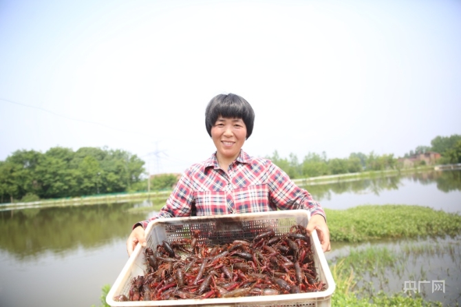 “我们每天早晨都要发货几百斤,四五点就要起来工作,确保把最新鲜的小龙虾送到大家的餐桌上。”陶龙行是合作社的老员工了,伴随着哗哗的水声,她熟练地将沉浸在水中的地笼慢慢提起,再轻抖几下,一只只小龙虾便滚落框中。