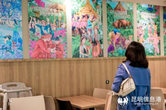 走进位于三市街的新柏联肯德基,一进到餐厅就看到与众不同的地方,餐厅在很多区域都融入了网络安全知识。值得一提的是,餐厅内由森特笑虎插画工作室原创的一组云南少数民族重彩画长卷,吸引了不少顾客的关注。