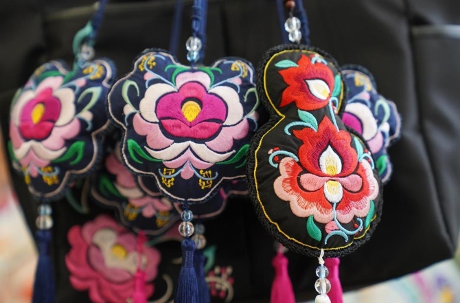 云南牟定:彝族绣娘端午忙 绣制“香囊”送吉祥