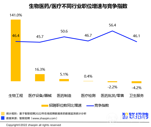 智联研究院近日发布《生物医药/医疗人才需求与发展环境报告》,其中指出,随着疫情常态化防控进入第三个年头,人们的健康意识日益增强,生物医药产业实现快速发展,生物工程招聘需求同比增长141%,平均月薪超1.1万元。医美、牙科及相关的数字化岗位也“钱景”看好。
