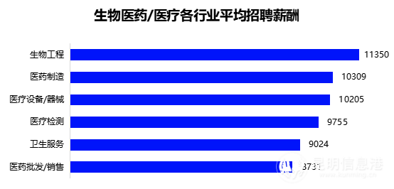 生物医药平均招聘薪酬为9949元
