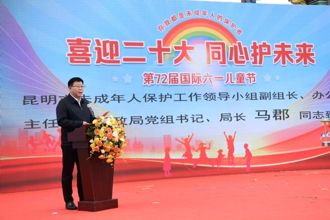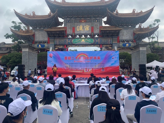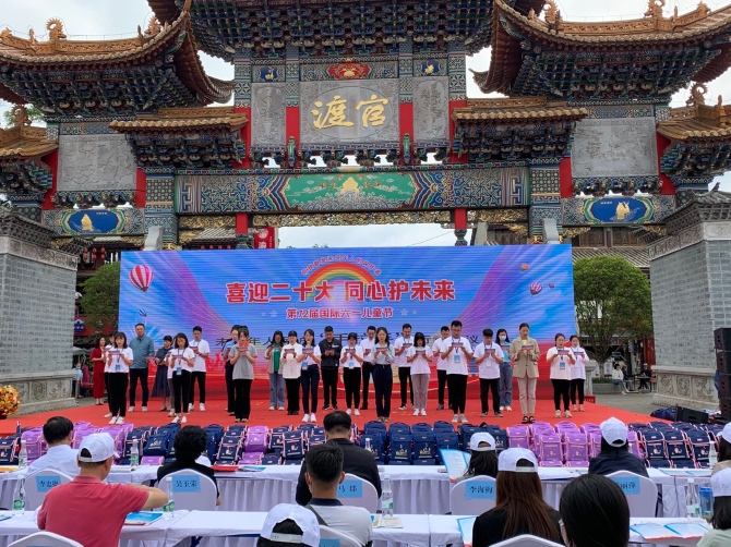 昆明信息港讯 记者朱俊杰 张玉玲 6月1日,由云南省未成年人保护办公室(以下简称省未保办)、昆明市未成年人保护办公室(以下简称市未保办)主办,官渡区未成年人保护办公室(以下简称官渡区未保办)协办的“云南省暨昆明市第七十二个‘国际儿童节’官渡区‘喜迎二十大,同心护未来’六一儿童节宣传活动”,在官渡古镇举行。省未保办常务副主任、省民政厅党组成员、副厅长吴玉荣,市未保办副组长、市民政局局长马郡、官渡区未保办常务副组长、区委常委、副区长黄忠梁等领导同志,与昆明市未保办,官渡区未保办成员单位代表百余人参加了本次活动。