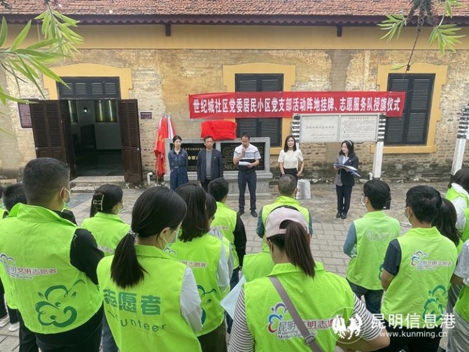 昆明信息港讯 记者龙泉积 6月1日,官渡区官渡街道世纪城社区举行居民小区党支部服务中心挂牌授旗仪式暨开展庆“六一”迎“端午”活动。现场,7个居民小区党支部活动中心同时挂牌,向6支志愿者服务队伍授旗,标志着世纪城社区“大组团·小网格”党建引领“组团式服务、网格化管理”落地落实。
