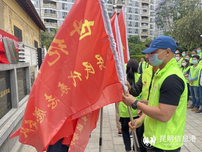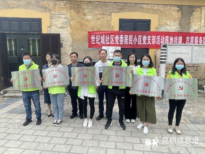 活动现场,世纪城社区玉春苑居民小区党支部服务中心”正式揭牌,官渡街道、世纪城社区分别向叠春苑居民小区党支部服务中心、元春苑居民小区党支部服务中心、忆春苑居民小区党支部服务中心、迎春苑居民小区党支部服务中心、傲春苑居民小区党支部服务中心、华春苑居民小区党支部服务中心7个活动阵地授牌,并为社区党员志愿服务队、社区在职党员志愿服务队、社区中老年文艺志愿服务队、居民代表志愿服务队、社区商户志愿服务队、社区大党委成员单位职员服务队”6支志愿服务队授旗。