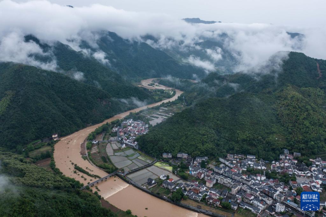 空中俯瞰湖源乡窈口村(无人机照片,6月1日摄)。