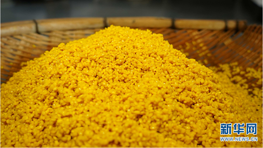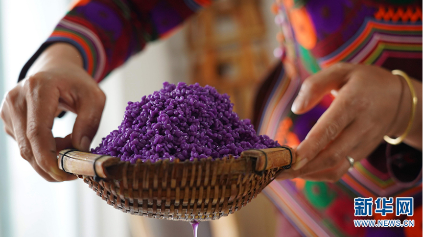 植物染制好的糯米(摄于5月24日)。新华网发(胡文 摄)