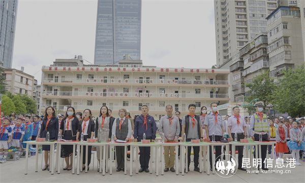 六月的阳光明媚灿烂,校园里,火红的旗帜高高飘扬,鲜艳的红领巾系满理想,星星火炬熠熠闪光。今年拓东第一小学共有49名新队员加入少先队,并成立了一年的新中队。