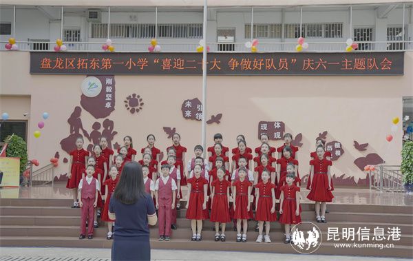 昆明信息港讯 记者劳学丽 赵振磊 “报告辅导员,拓东一小应到1092人,实到1092人。今天我们开展‘喜迎二十大 争做好队员’庆六一主题队会,现已做好一切准备,请求活动开始。”6月2日,在激昂的《中国少年先锋队队歌》歌声中,昆明市盘龙区拓东第一小学“喜迎二十大 争做好队员”庆六一主题队会正式开始。