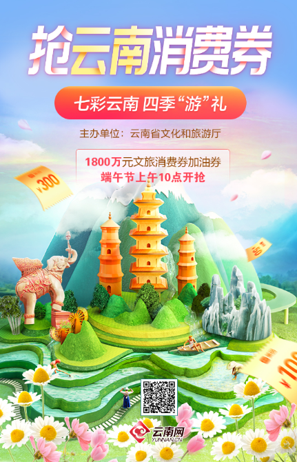 6月3日上午10:00,将面向本省和全国来滇游客发放第一轮1800万元文旅消费券和加油券。广大游客可通过游云南、携程、同程、美团4家平台抢券。