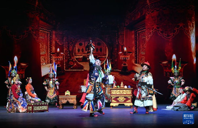 演员在格萨尔藏戏《赛马称王》中表演。新华社记者 金良快 摄