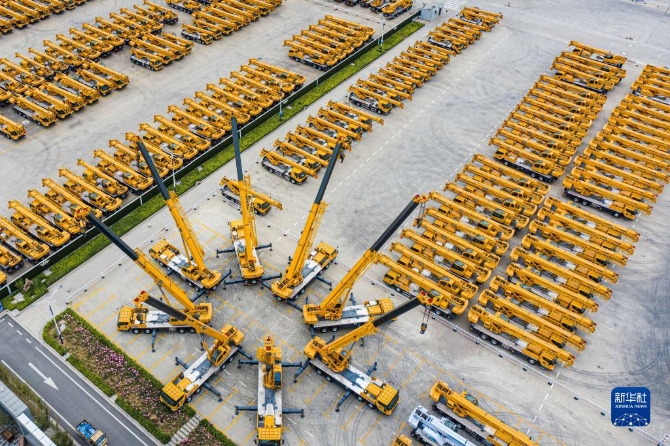 这是5月9日拍摄的江苏徐工集团重型机械有限公司的产品调试场(无人机照片)。新华社发