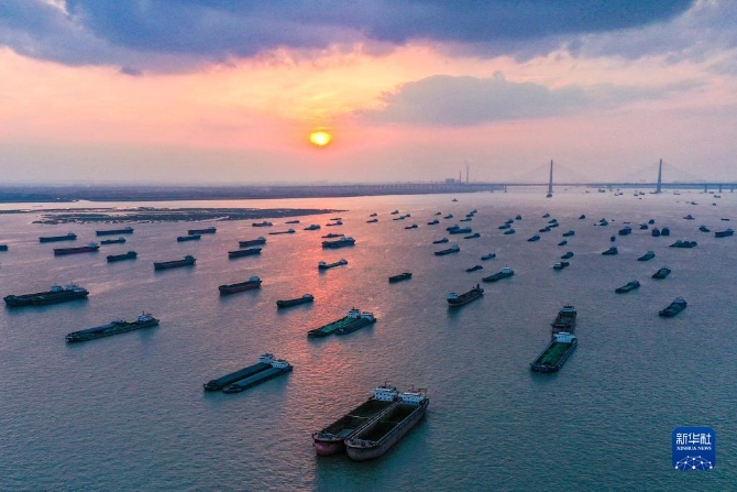 这是2021年10月25日拍摄的长江南通段(无人机照片)。新华社记者 李博 摄