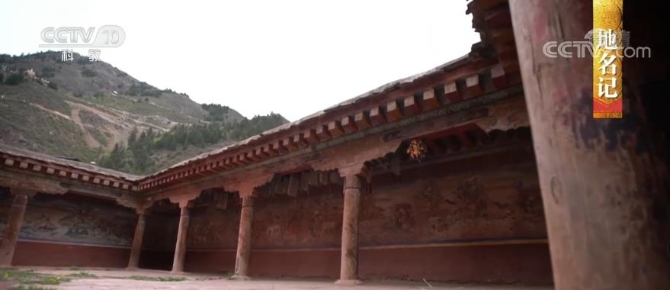 这是川藏北线入藏途经的一座大型寺庙——瓦拉寺。在寺院的主殿,遗存着一幅年代久远的格萨尔王与三十大将的大型壁画。壁画全长57米,以三面墙相围,由11根通天柱支撑主体。整幅壁画画工精美、庄重典雅,保存十分完整,具有极高的文化价值。