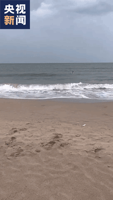秦皇岛海港区东山浴场风大浪高汹涌的浪潮中一名女子朝海中走去