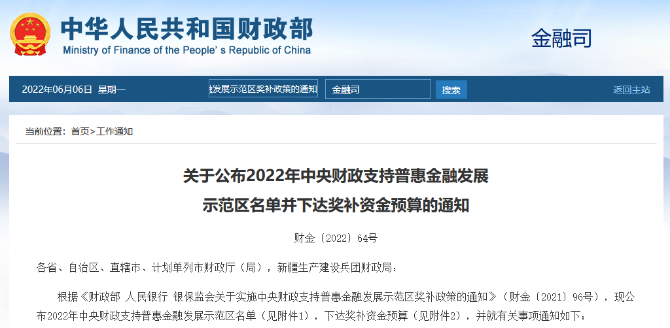 为贯彻落实党中央、国务院关于发展普惠金融和支持小微企业、“三农”融资发展的决策部署,在总结财政支持深化民营和小微企业金融服务综合改革试点城市工作经验的基础上,财政部、人民银行、银保监会自2022年起组织实施中央财政支持普惠金融发展示范区奖补政策。