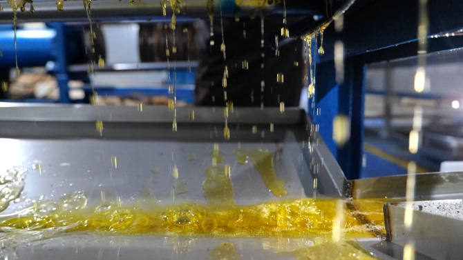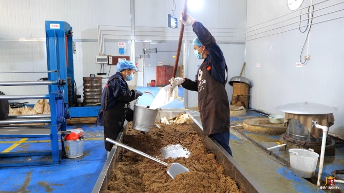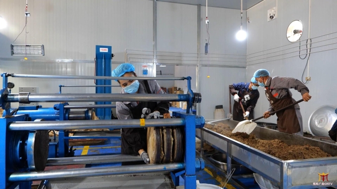 2018年石正发又成立了广南县石辛源农林开发有限公司,据他介绍,公司与合作社相互协同,齐心共进,就能带动农民种植油茶树增收致富。走进公司的茶油加工间,只见几名员工正在忙碌着。两人先把烘焙好的茶籽碾磨成粉,再上甑过蒸,然后把蒸熟的茶籽用布包裹成一个个圆形的大饼。一道道工序井井有条。接着,把10多个抟好的茶饼放到一个长条的榨油机里,灰扑扑的茶饼逐渐“脱胎换骨”,金灿灿的山茶油缓缓从茶饼中流淌而出。正在“包饼”的农祖花是当地村民,她常年在公司里打工,到茶果采收时,她就将茶果卖给合作社,实现了经济双丰收。