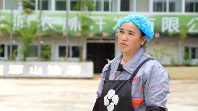 广南县八宝镇坝哈村村民 农祖花:“(我家)栽得20多亩(油茶),收得七八千斤,拿来卖给老板,自己还在这里做工,总共得五六万块钱。”