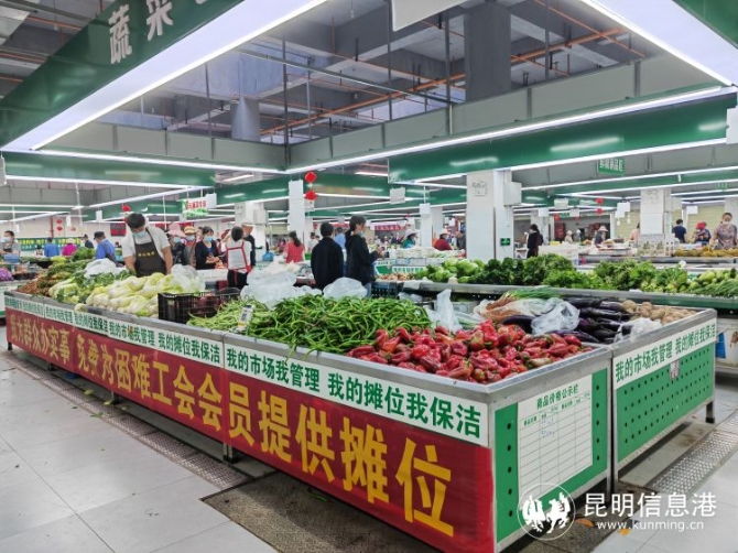昆明信息港讯 记者杨雁 记者从昆明滇池国家旅游度假区大坝农贸市场获悉,在经历了提升改造和试营业后,该市场为困难农户提供20个助农助销免费摊位。目前,已经有富民、禄劝两地农户进驻农贸市场,将地方特色农产品运到这里出售。