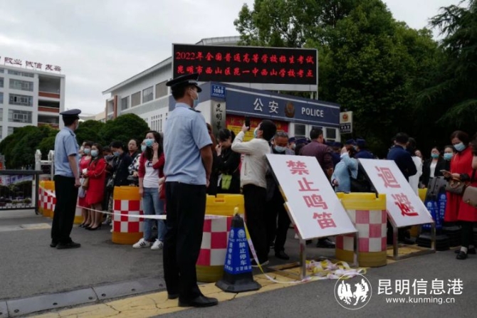 西山公安联合交警部门根据现场情况,开辟临时停车场地和停车泊位,增派警力加强交通疏导,必要时采取间隙性交通管制或临时改道等措施,确保考生和有关人员进出考点交通畅通。同时,针对考试期间可能出现的轻微交通事故、拥堵等情况,及时发现、处早处小。