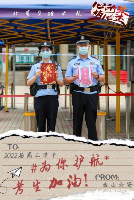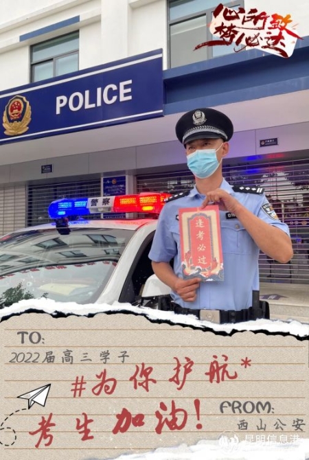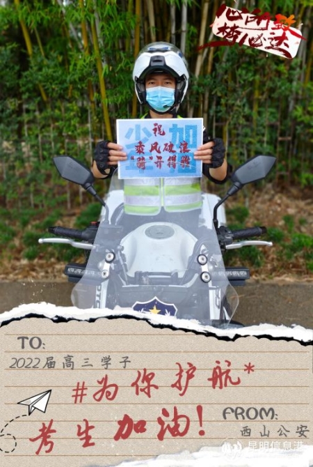 藏蓝“护考团”送上真挚祝福——翻越千山万水,你将光芒万丈!祝福所有考生用漂亮的答卷入场盛夏的远方。加油!!!(昆明信息港 记者合宇聪 西山警方供图)