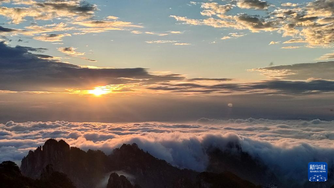 游客在黄山观看日出(6月5日摄)。新华社发(汪新平 摄)