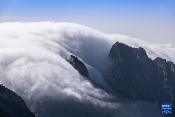 黄山的“瀑布流云”景观(2018年11月20日摄)。新华社发(水从泽 摄)