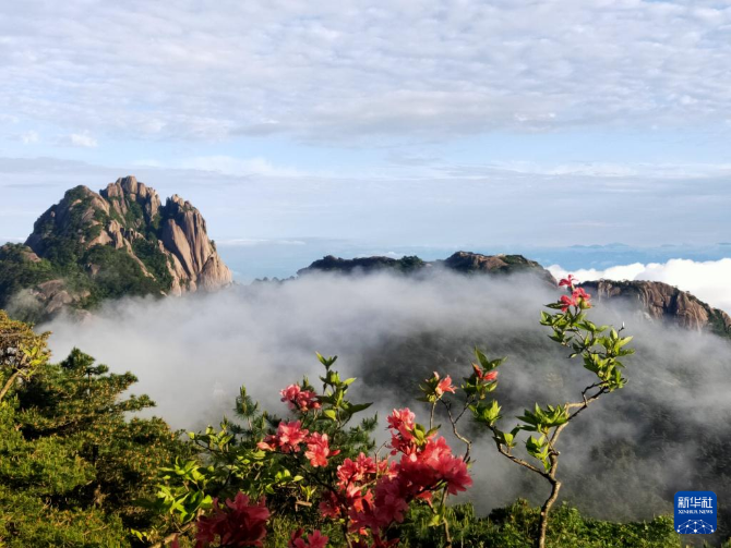 黄山夏花伴云海(6月2日摄)。新华社发(徐高云 摄)