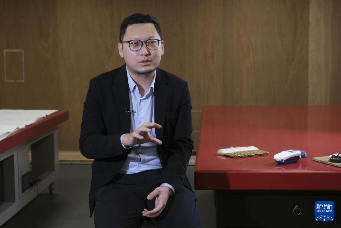 在香港故宫文博馆,藏品修复团队主任吕智超接受新华社记者专访(4月22日摄)。新华社记者 王申 摄