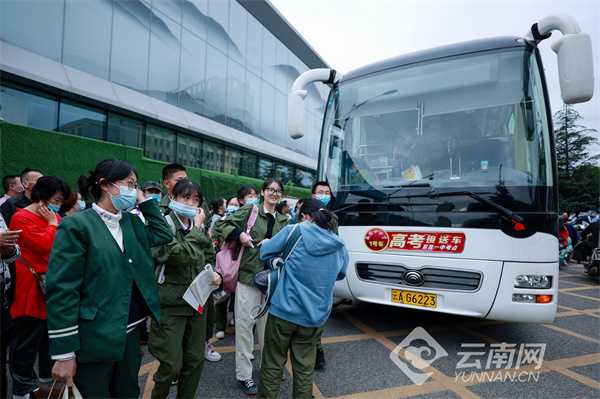 “稳稳地,别慌!”“加油,别紧张!”考点入口一侧,云南师范大学实验中学老师杨存珠和其他几位老师组成了送考队伍,他们统一身穿印有“高考必胜”字样的红色T恤,和入场的孩子们击掌、拥抱,做最后的叮嘱。昆三十中的送考老师给每一个进考场的孩子递上了一颗巧克力,寓意开开心心、甜甜蜜蜜,轻松应考。一旁的云南民族中学老师李加恒一手抱着几束鲜花,一手提着几袋零食。“一些不能来到现场送考的考生家长托我们给孩子买好鲜花和零食,等考试结束给他们一个惊喜。”