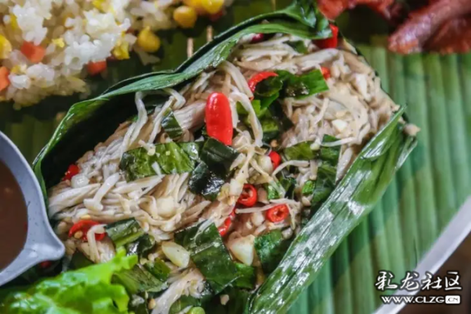 芭蕉叶是傣族饮食中重要的餐具,它不能食用,却是餐饮烹饪中不能缺少的一味。除了充当盛具,还可以用来包烧。