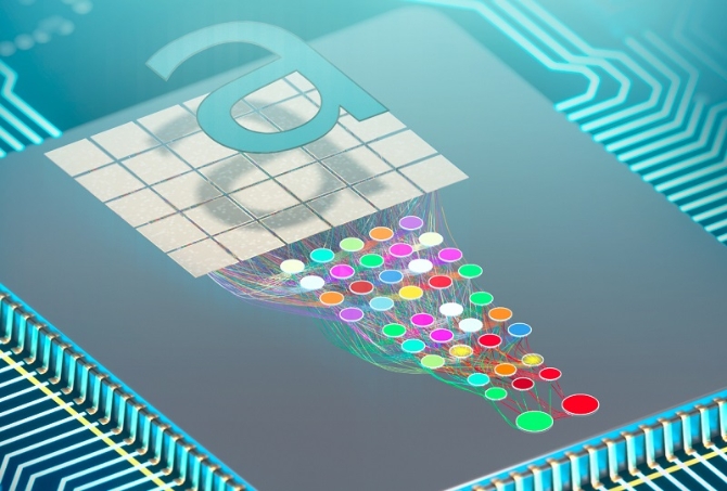研究人员开发的芯片可以在不到1纳秒的时间内检测和分类图像,不需要单独的处理器或存储单元。图片来源:今日宾夕法尼亚/Ella Maru工作室