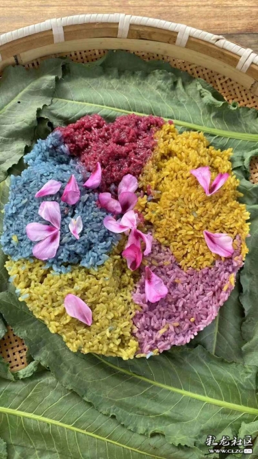 花米饭是丘北壮族传统的“三月三”民俗文化节风味食品。壮族花米饭主要是精选上好的糯米为主料,用山上采挖回来的野生植物的根、茎、花、叶,提取出红、黄、青、蓝、紫、黑等天然无公害的色素,再把这些自制的色素和选好的糯米共同浸泡使其着色,然后按不同颜色分放到甑子里蒸熟即可食用。壮族花米饭是一种充满诗意的绿色美食,色彩新鲜夺目,营养丰富,让人既饱了眼福又饱了口福。