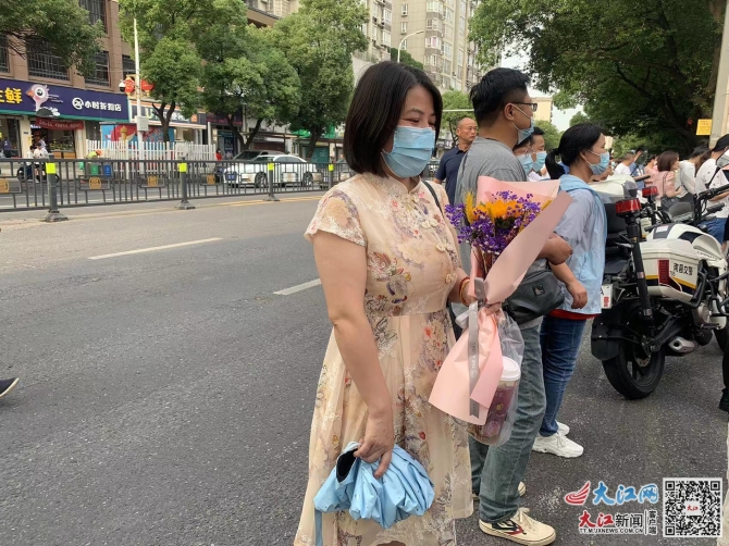考场外,一位手捧鲜花的母亲快速走向人群中的女儿,将手中的鲜花送给女儿,并给了孩子一个深深的拥抱。“孩子读书这些年辛苦了,这束花里的向日葵希望她一举夺魁,麦穗则希望她平平安安。”裘女士说,考得如何暂时不去考虑,现在就希望孩子能好好休息下。