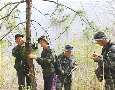 中国科学院昆明动物研究所科研人员和恐龙河自然保护区巡护员选择监测点位安装红外相机。李永宁摄(人民视觉)