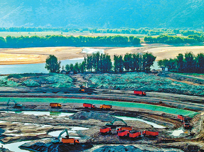 图为在丽江市玉龙纳西族自治县石鼓镇拍摄的滇中引水石鼓水源工程建设现场。吴红东摄(人民视觉)