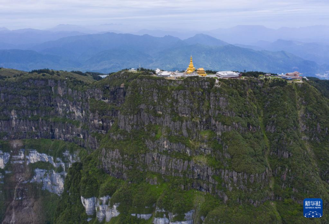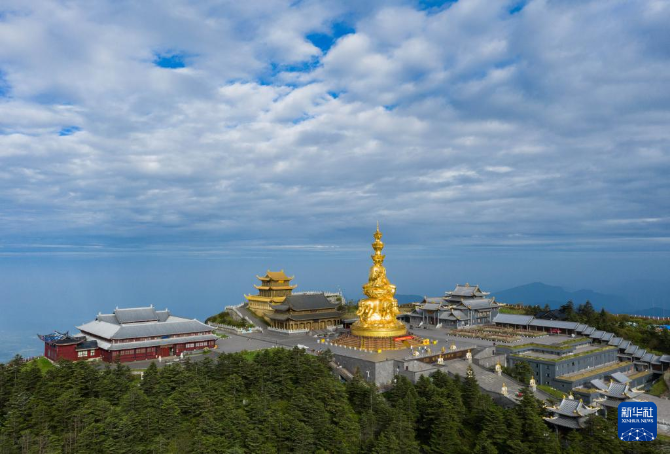 峨眉山景区金顶和万佛顶(6月5日摄,无人机照片)。新华社记者 江宏景 摄