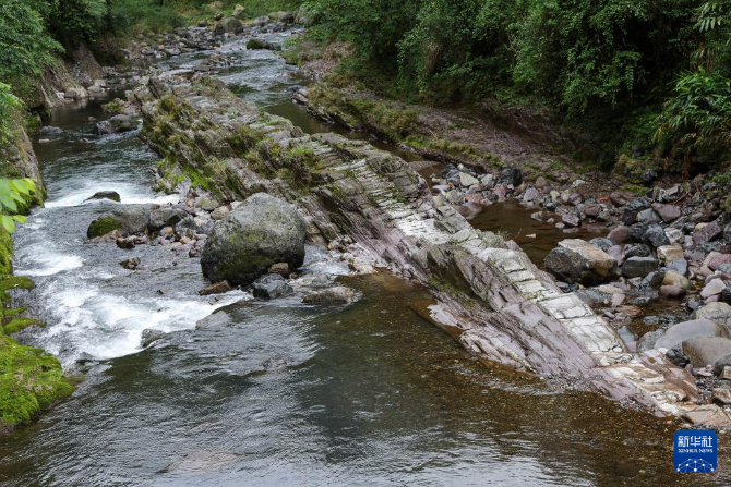 峨眉山景区龙门洞峨眉河中的地质景观“石船”(6月5日摄)。新华社记者 江宏景 摄