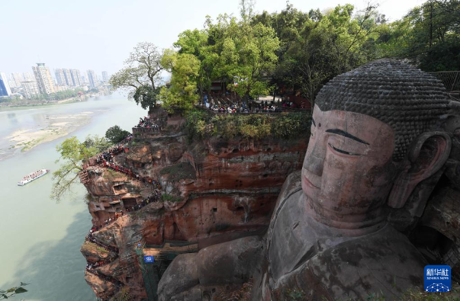 游客在乐山大佛景区游览(2019年4月1日摄)。新华社记者 江宏景 摄