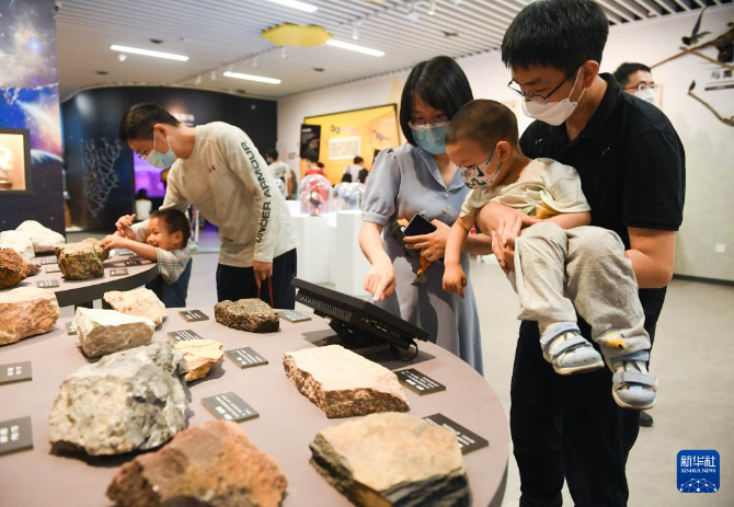 6月9日,家长带着孩子在“24小时博物馆”内参观岩石标本。新华社记者 翁忻旸 摄